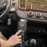Geen gereedschap nodig. Klik eenvoudig de telefoonhouder op de basis en plaats de basis in de bekerhouder. De basis met een grote draairing maakt het gemakkelijk om de basis uit te breiden om ervoor te zorgen dat deze stevig past in elke bekerhouder tot 8.6 cm breed.